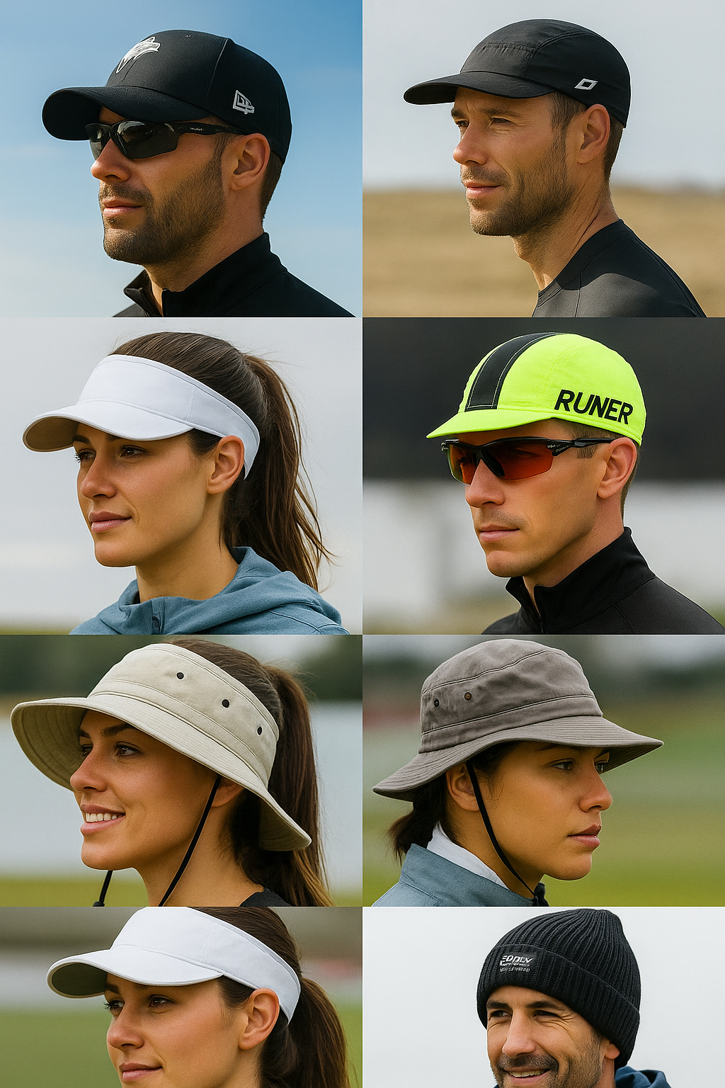 Cycling caps — often worn under helmets — balance comfort and utility, managing moisture while shading your eyes without blocking vision. For high-sun conditions, visors are unbeatable: they protect your face while keeping the top of your head cool and ventilated.